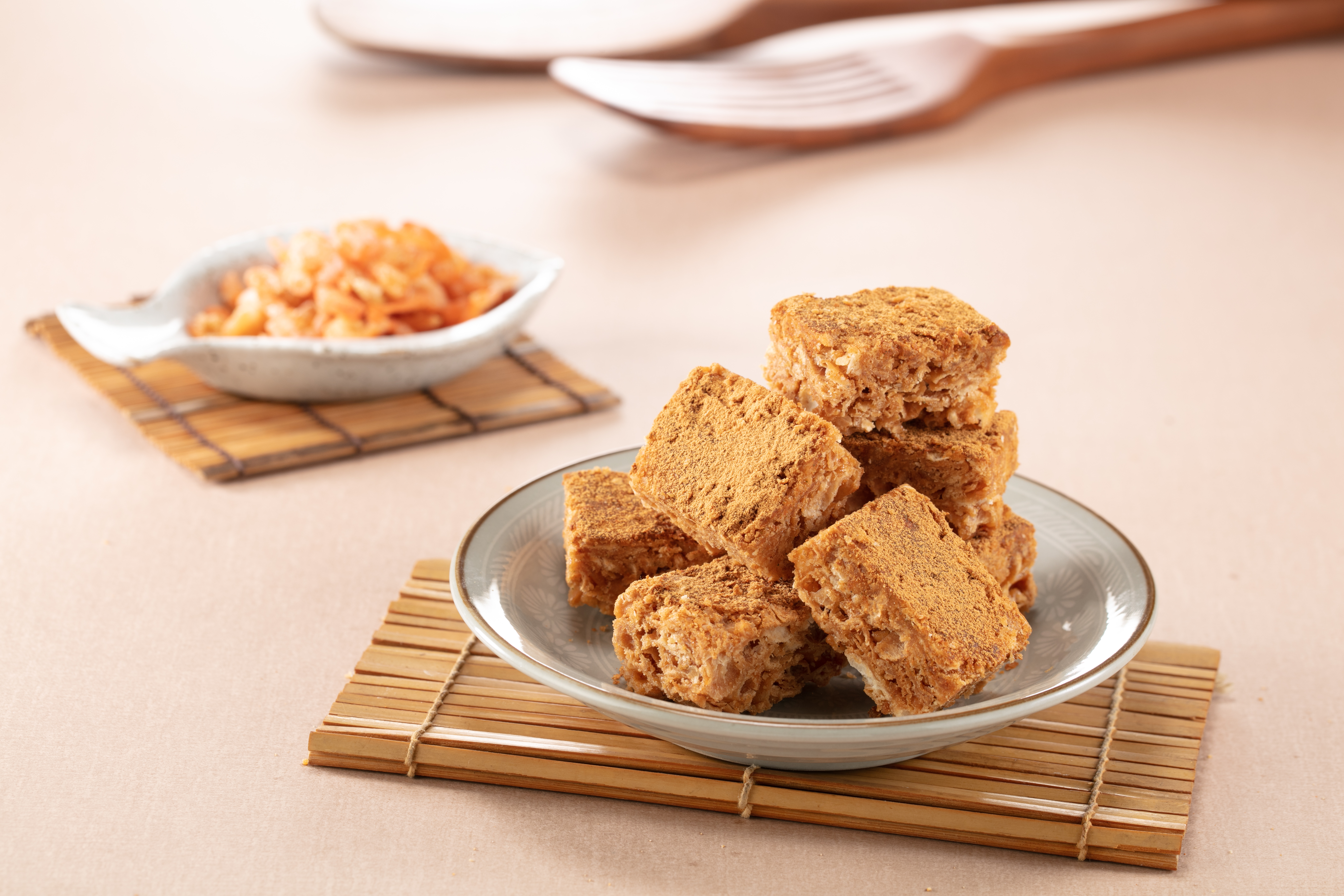 結合磷蝦與白蝦乾燥粉,鹹香鮮味滿點的酥脆沙其馬,袋裝方便隨享
